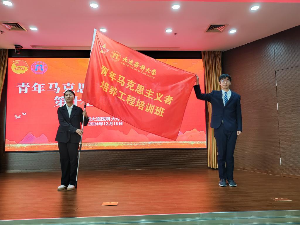 第十四期青马班学员、校学生会主席团成员韩雨彤同学分享她的青马故事,同时将寓意着青马精神延续的队旗,传递给新一届学员代表,随后,附属第二医院2023级临床医学(5+3一体化)专业王鹏宇同学代表第十五期“青马班”新学员发言。